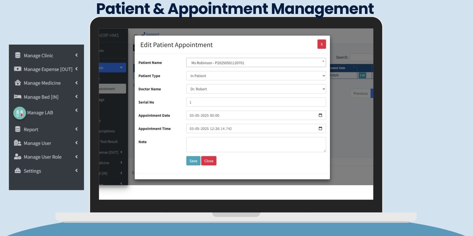 ✅ Key Modules & Features Patient & Appointment Management