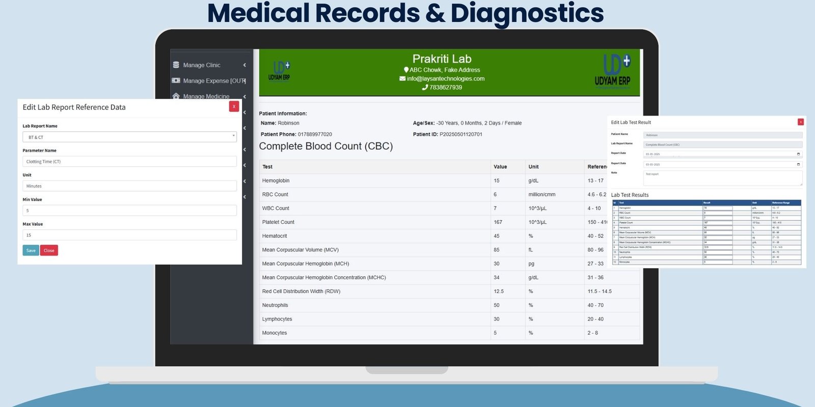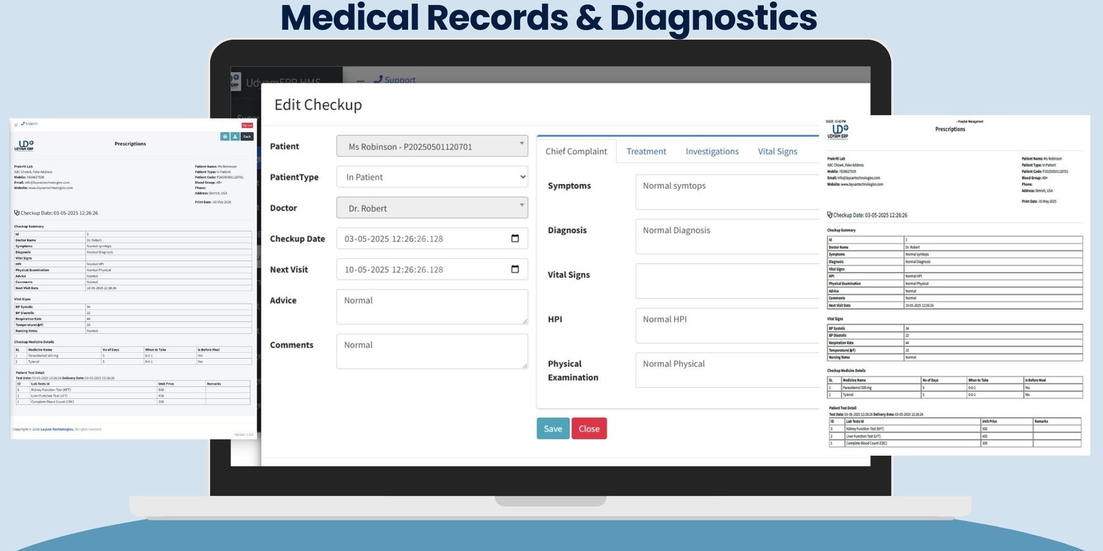 Perform and manage medical/lab tests with full parameter.