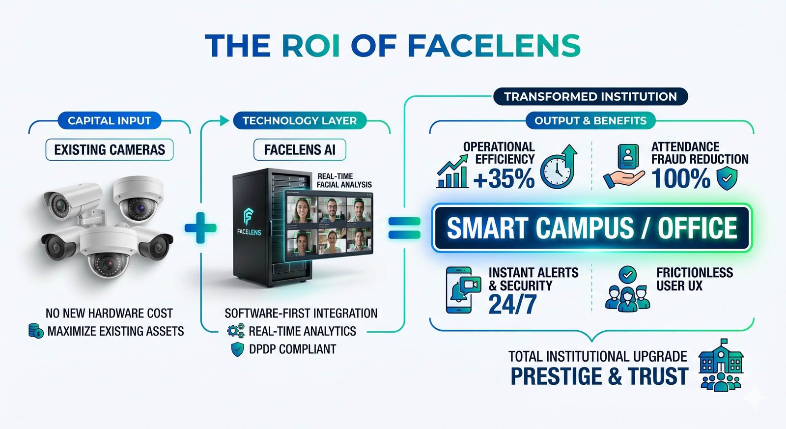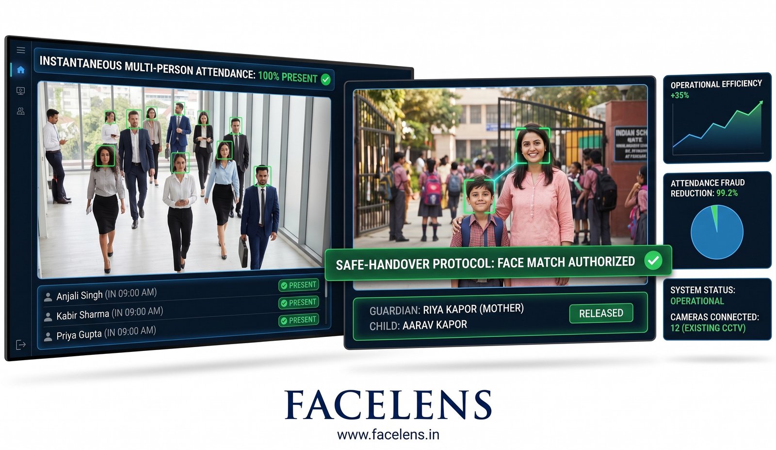FaceLens is not just a software; it is an Institutional Intelligence Layer. Designed for the modern Indian landscape, it bridges the gap between passive surveillance and proactive protection. By integrating with your existing CCTV infrastructure, FaceLens eliminates the need for expensive biometric hardware while providing a 100% accurate, frictionless experience for students, employees, and parents.