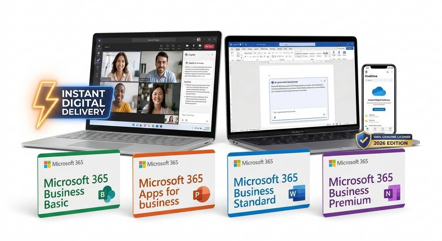 Microsoft 365, Business Standard, Business Premium, Business Basic, Apps for Business, 2026 Edition, Genuine Key, Digital Delivery, Office 365,